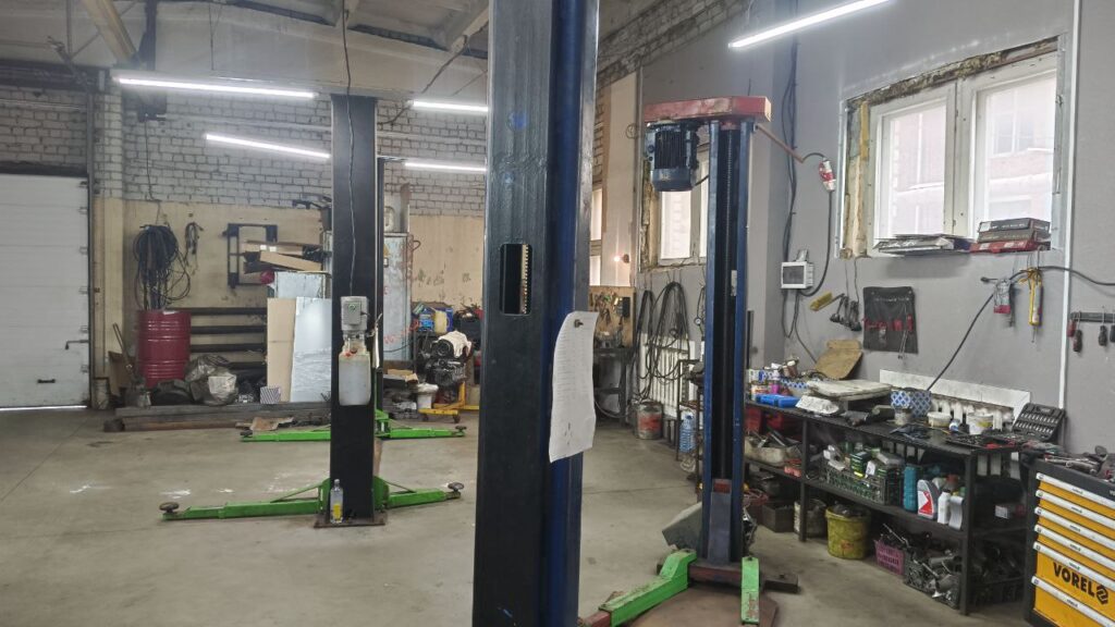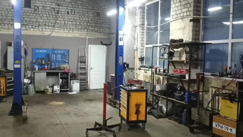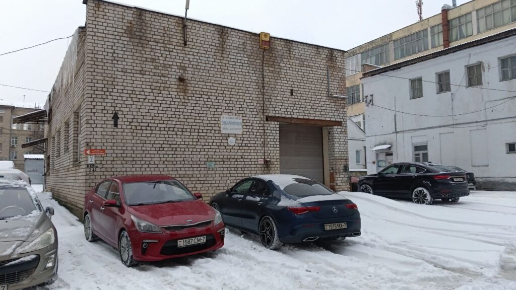 Заезжаете в арку. Сразу за постом охраны, в первом же здании, находится наша автомастерская
